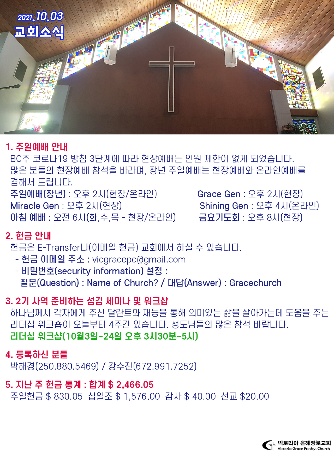 2021년 10월 3일 교회소식/주보
